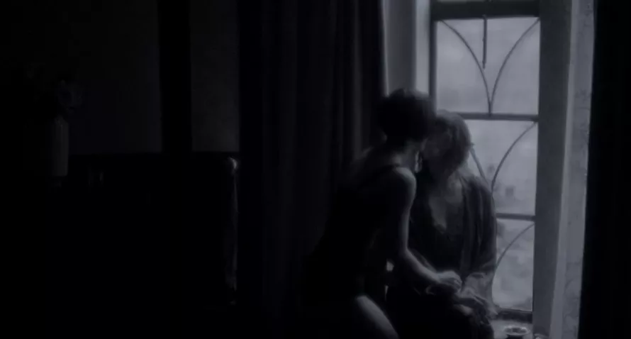 於堇留她過夜,黑白中,白雲裳褪去旗袍後露出的皮膚更白。