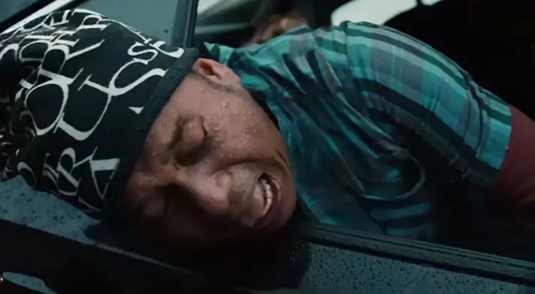 兩名刑警為了拷問出信息,將知情人的頭塞出車窗然後開足馬力: