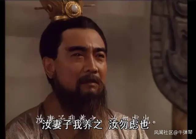 曹操陣營軍糧短缺,將士很不滿,於是,曹操召來押糧官王垕,説:我想借你人頭一用,我會照顧好你的妻兒,你放心去吧。(吾欲問汝借一物,汝妻子我養之,汝勿慮也。)