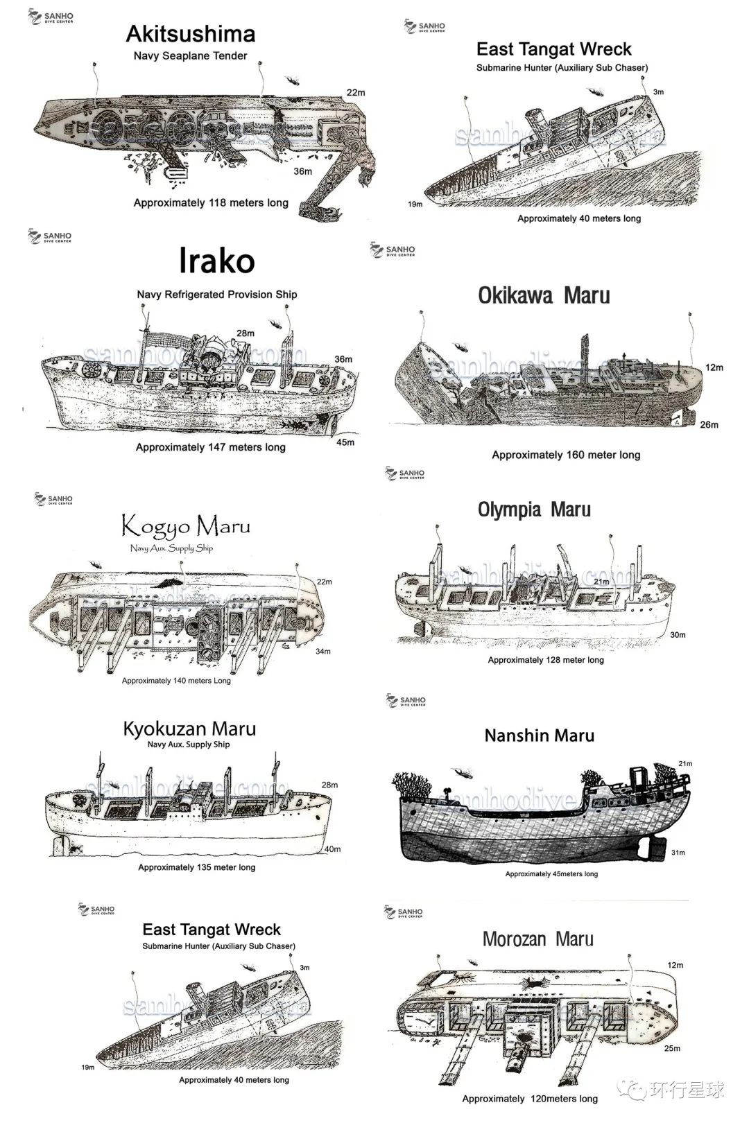 我們在6天的潛水行程安排中要潛10艘沉船,它們分別是: