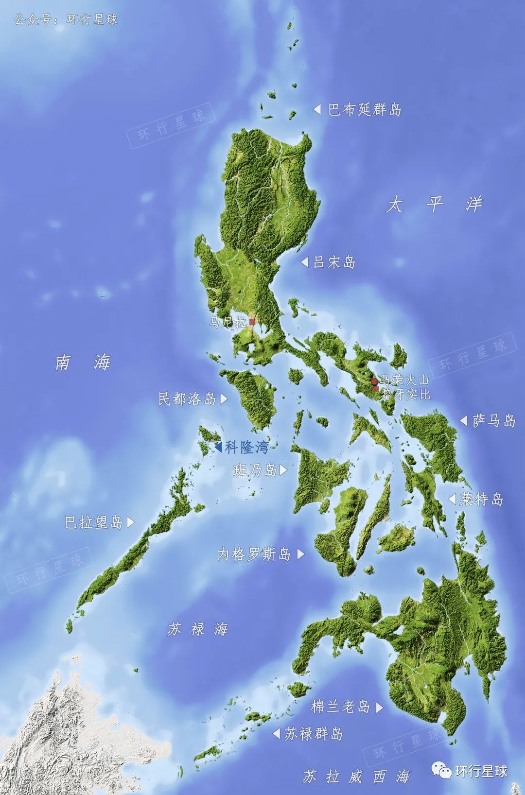 除此之外,科隆灣以北還有僅次於澳洲大堡礁的阿波島(APO-REEF),科隆北還生活着三十多頭野生儒艮(Dugong,海牛的一種,俗稱美人魚),這種温順的大型動物已在2012年被列入《世界自然保護聯盟》(IUCN)瀕危物種紅色名錄。