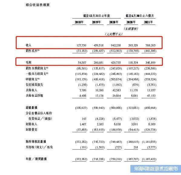 2018年~2020年,其營收分別為1.28億元、4.6億元、9.42億元;同期的毛利分別為5459萬元、2億元、4.3億元。