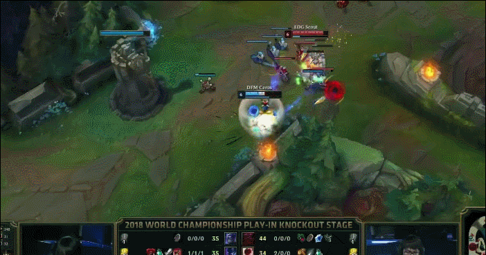 Ceros拿出了自己招牌的英雄,但還是被EDG的中單選手Scout對位單殺,一場摧枯拉朽的比賽再一次把DFM推出只有一步之遙的世界賽。