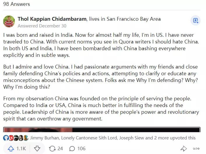 排名第一的是一位印度人的回答,他的答案獲得了1100+贊。
