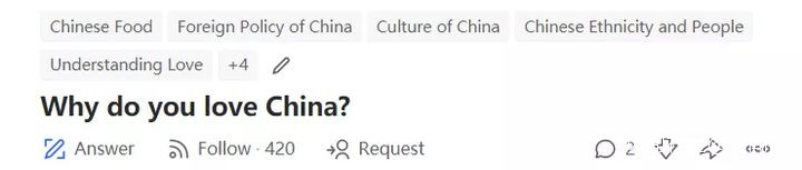 外網有一個比較熱門的討論,一共吸引了99個回答:你為什麼愛中國?
