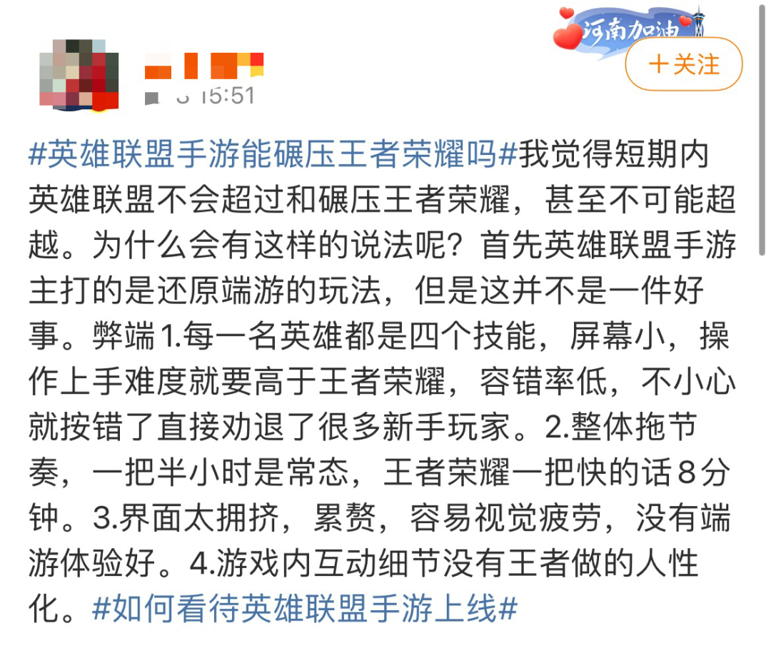 有網友認為,LOL手遊還原端遊的玩法並不是一件好事。技能多、屏幕小加大了操作上手難度,對新玩家不友好。