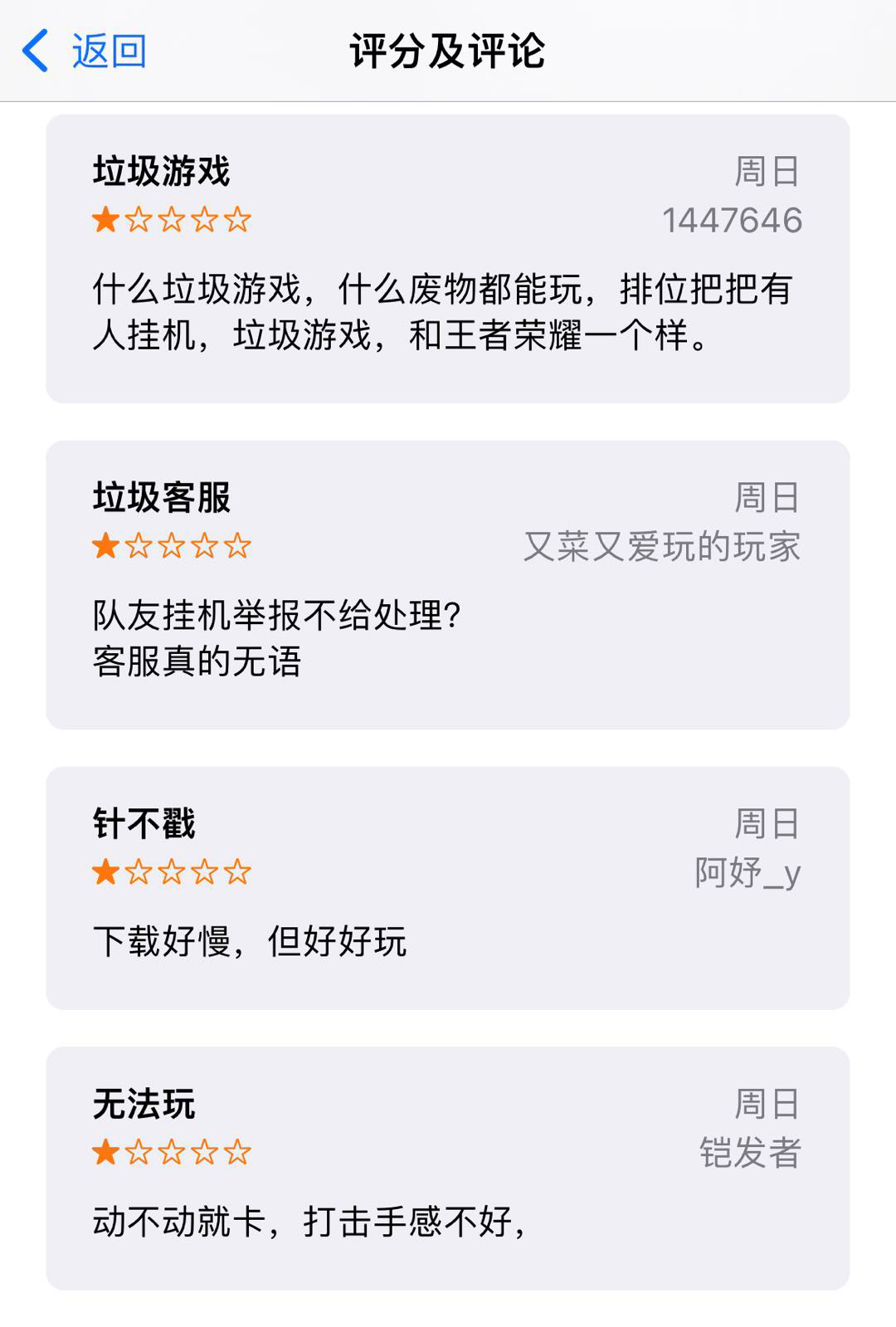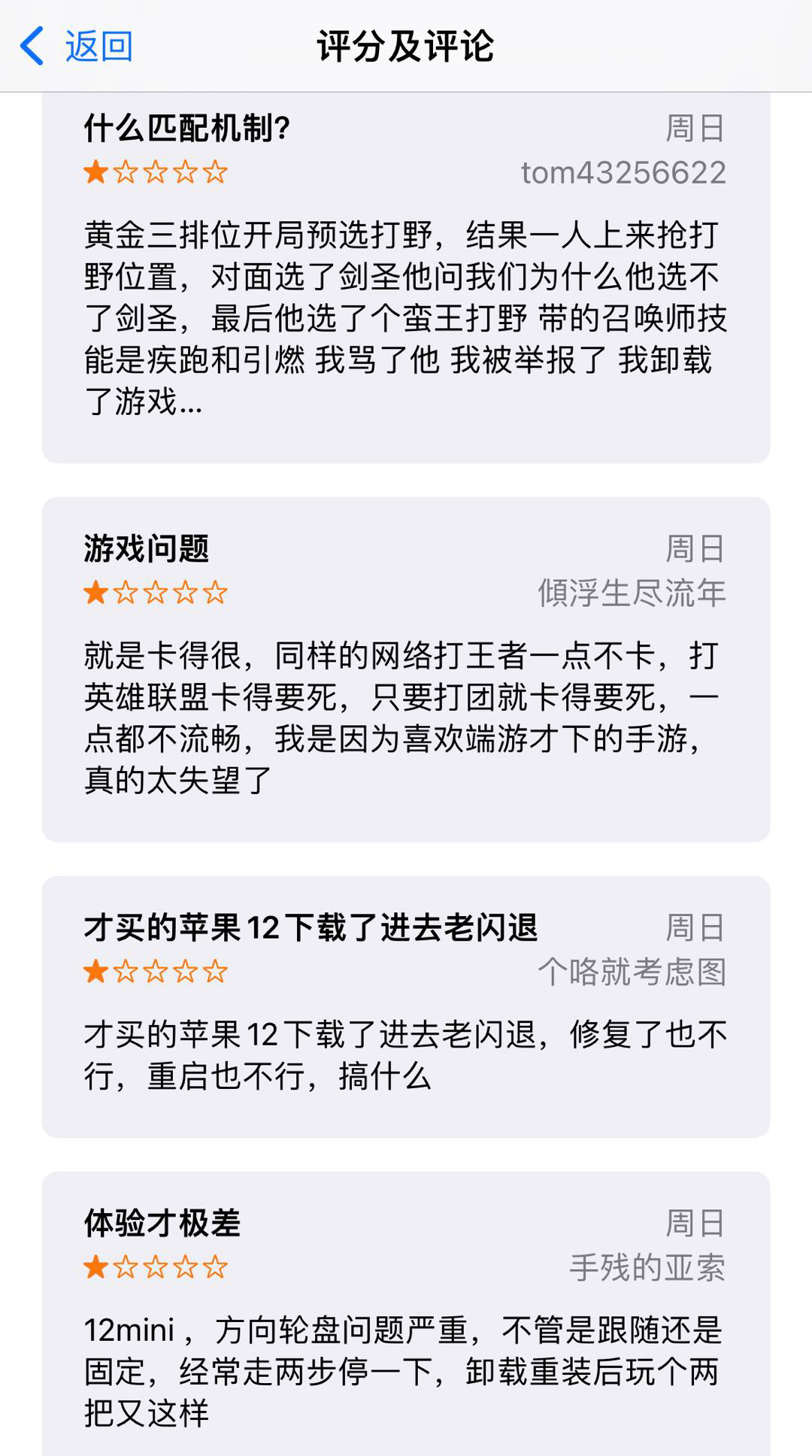 而給出低分評價的原因主要是網絡卡、匹配機制、閃退等。