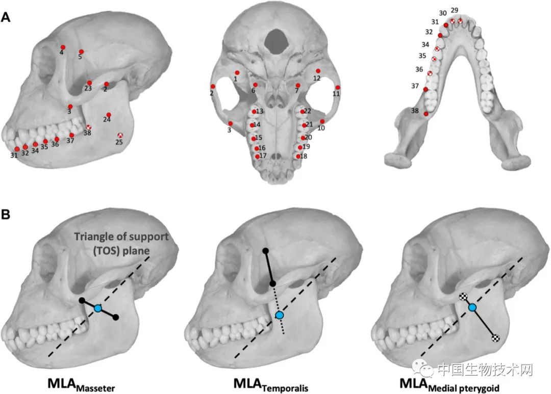 在這項研究中,研究人員為從小狐猴到大猩猩等21種靈長類動物的頭骨和牙齒創建了3D生物力學模型,並模擬了在這些物種的整個生長過程中每個主要咀嚼肌的附着位置。