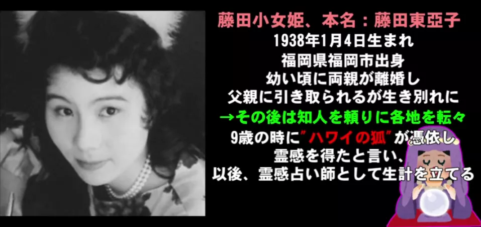 在日本就有着這麼一位政商通吃、大把撈金的美女預言家。日本首相、松下電器的社長都曾是她的客户,她就是藤田小女姬。