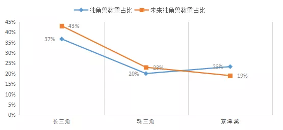 獨角獸和未來獨角獸具有顯著的集聚效應。從城市圈來看,長三角聚集了11家獨角獸品牌和43家未來獨角獸品牌;珠三角則聚集了6家獨角獸品牌和23家未來獨角獸品牌,7家獨角獸和19家未來獨角獸落户京津冀。合計來看,80%的獨角獸和85%的未來獨角獸來自於這3個城市圈。值得關注的是,廣州擁有極好的供應鏈、人才等消費創業基礎設施,人均GDP和消費力都不錯,但居然沒有一家上榜的新消費品牌獨角獸,其新消費品牌的“孵化”能力較深圳、杭州稍遜一籌。