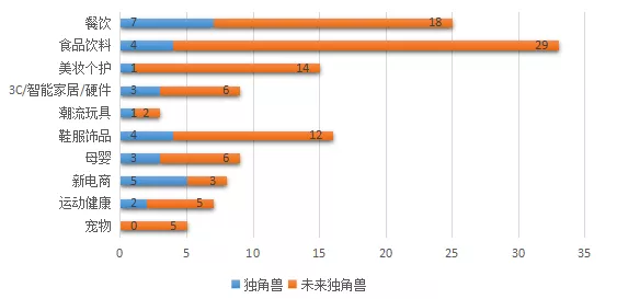 從行業來看,食品飲料和餐飲是新消費品牌創業領域的熱門賽道,聚集了數量最多的新消費品牌獨角獸和未來獨角獸。