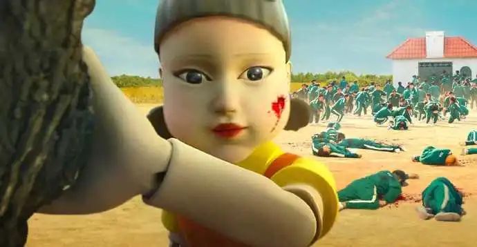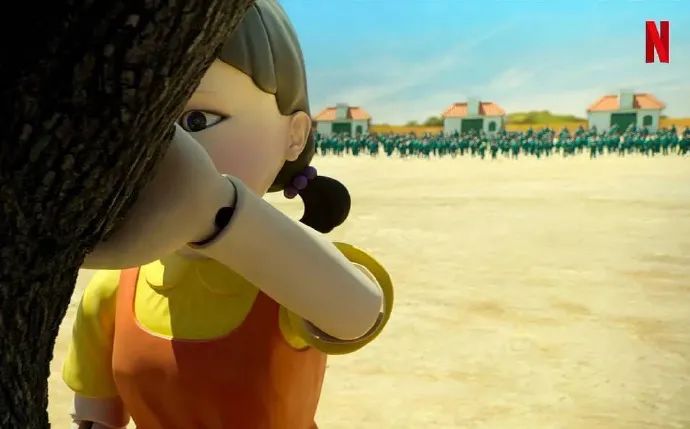 劇中游戲玩法,跟我們小時玩法一模一樣,都是有個主持人。當主持人轉身矇眼時,你趕緊往前跑,但當主持人轉身過來,你必須想象自己是個木頭人,保持一動不動的姿式。