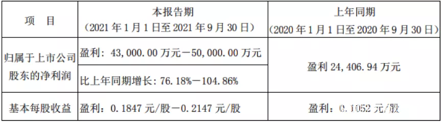 具體來看,前三季度,我愛我家實現歸屬於公司股東的淨利潤為4.3億元-5億元,去年同期淨利潤為2.44億元,同比增長76.18%-104.86%,基本每股收益為0.1847元/股-0.2147元/股,去年同期的基本每股收益為0.1052元/股。