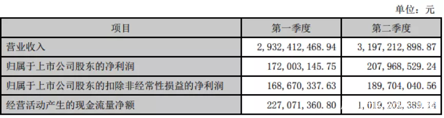 拆分來看,今年第一、第二季度的營業收入分別為29.32億元、31.97億元,環比增加9.04%;