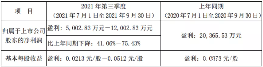 公告顯示,2021年第三季度,我愛我家預計實現歸屬於公司股東的淨利潤為5002萬元-1.2億元,去年淨利潤為2.04億元,同比下降41.06%-75.43%,基本每股收益為0.0213元/股-0.0512元/股,去年同期的基本每股收益為0.0878元/股。
