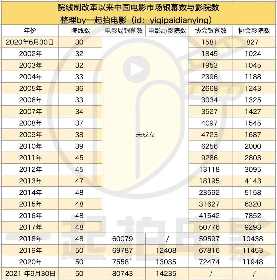 從2002年,院線制改革以來,一直是中國電影發行放映協會負責銀幕數以及影院數的統計。在2018年國家電影局掛牌成立之前,中國電影發行放映協會一直是唯一的數據官方渠道。而從2018年之後,國家電影局和中國電影發行放映協會分別擁有了兩套數據體系。