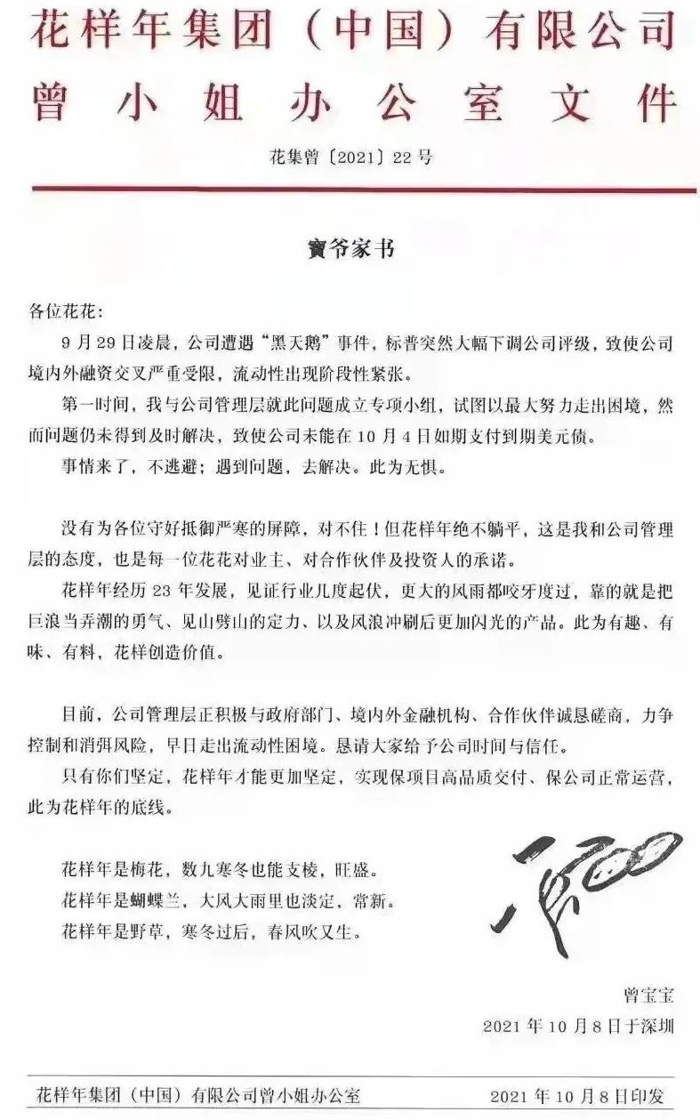 很多神神叨叨的紅頭文件就出自這個辦公室,傳播比較廣的兩個文件是:之前的《關於花樣年要求和鼓勵員工穿得美的通知》與最近的《寶爺家書》。