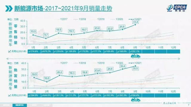 這似乎與最近的一組數據矛盾。從去年開始,新能源銷量每月節節攀升,截止今年9月,新能源車銷售滲透率擴至20.4%的新高,這一數字意味着什麼?我國新能源汽車滲透率突破1%,用了10年時間;新能源汽車滲透率從1%快速提升到5%,用了3年多時間,這一數字擴張的時間增長的時間越來越短,似乎説明着趨勢洶湧。