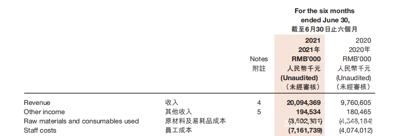 就拿員工成本來説,其在2018年、2019年、2021年5月所佔收入的比例分別為的23.3%、23.4%和24.1%。