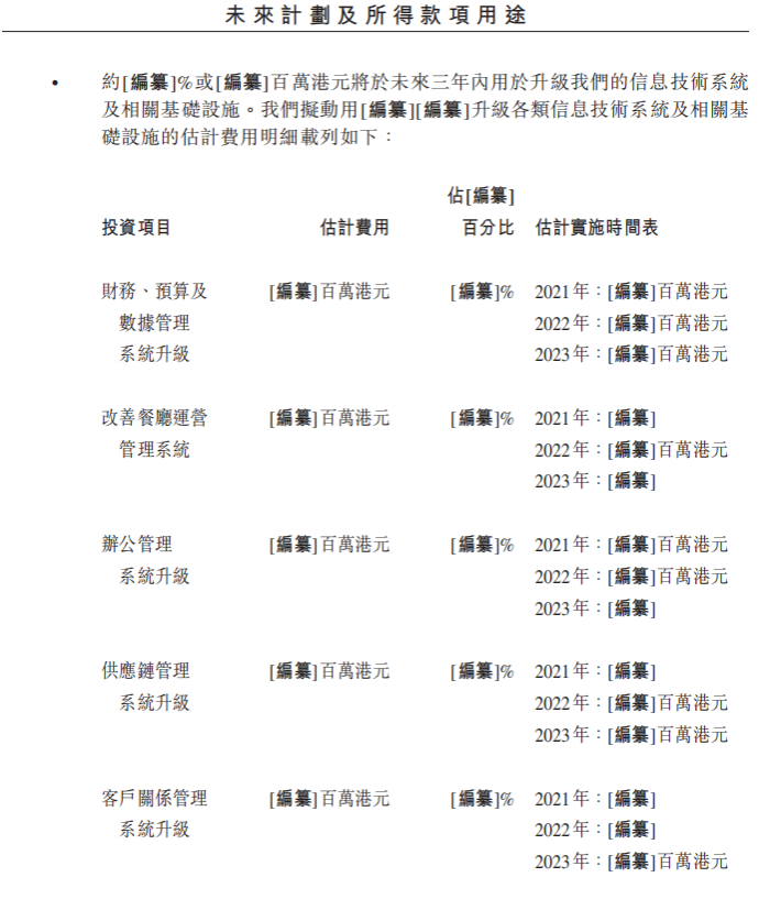 雖然公司表明了繼續升級信息技術基礎設施的意向,但在集團“未來計劃所得款項用途”中關於信息系統相關基礎設施的升級的預算和資金分配並沒有明確的數字和時間規劃。