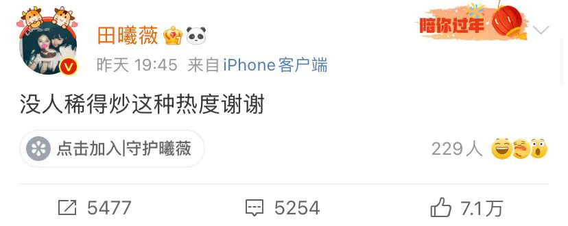 田曦薇這妹子也很剛,9月25日凌晨直接霸氣發文回應: