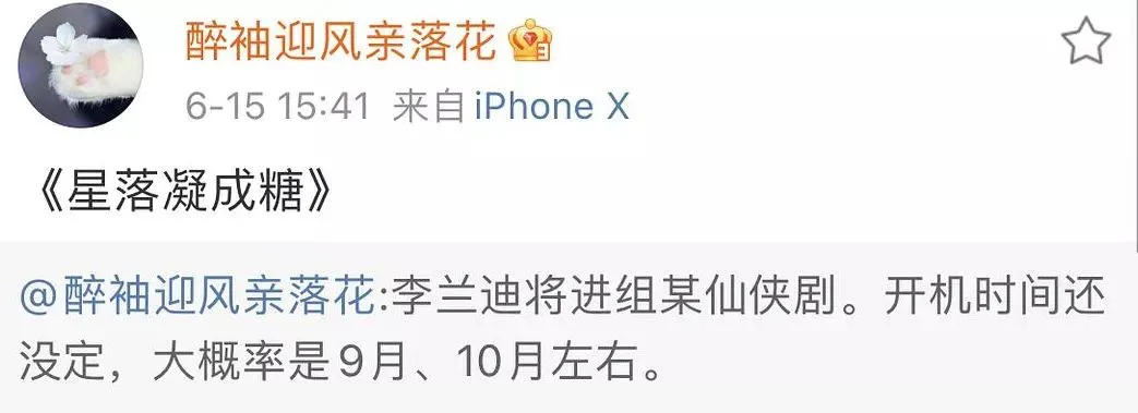 但是在9月23號的時候,大V們突然站出來集體感嘆《星落凝成糖》的女主由李蘭迪換成了田曦薇,網友自然而然就想到了李蘭迪是不是被田曦薇截胡了……