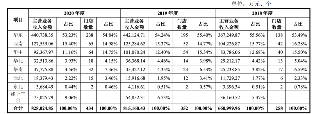 目前,孩子王的門店仍呈區域性集中模式。華東地區的門店就有238家,佔全部門店數量的55%。近三年以來,華東地區門店營收佔主營業務收入的50%以上。拓展全國性佈局,仍然需要時間。