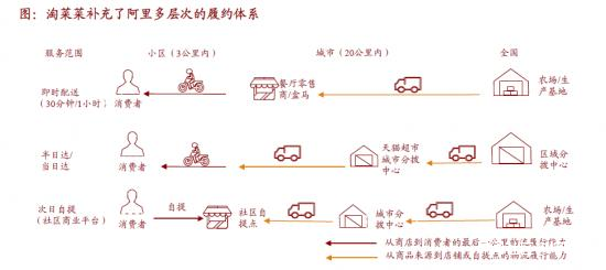 從這個角度來看,上文提到的,阿里對夫妻店進行改造,以增加冰櫃等方式來提升終端履約能力,包括整個阿里多層次供應鏈系統與淘菜菜共享,都是為了更有效提高生鮮的履約能力而服務。