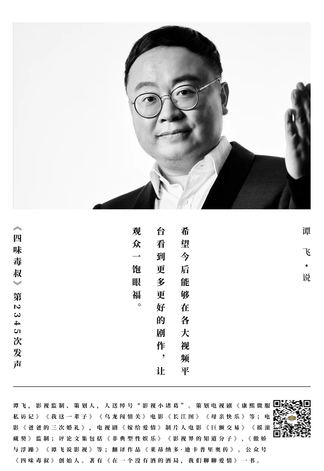 當然不管怎麼説,我覺得超前點播取消之後,所有的觀眾和劇迷都對劇作的質量提出了很高的要求。如果我是你平台的會員,你得給我不間斷的提供好的作品,讓我能永遠對你這個平台抱有興趣。那麼我們也希望今後在這些平台能夠看到更多更好的劇作,讓觀眾一飽眼福。好,這個話題就説到這裏。
