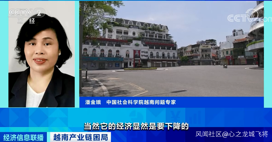 中國社會科學院越南問題專家 潘金娥: 7月到9月這三個月,南部工廠幾乎全部關停了,在這樣的 背景下, 當然它的經濟顯然是要下降的,因為越南的外貿依存度達到了200%以上。
