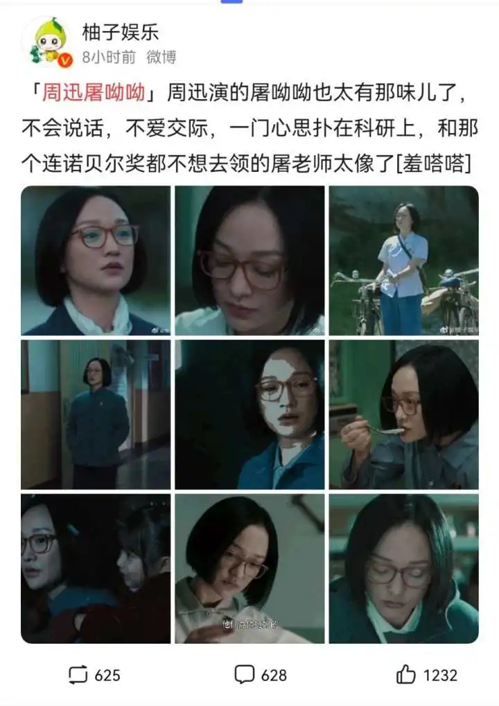 我認為電視劇中周迅這個表演,完全可以去演《三體》裏的葉文潔,而不是演屠呦呦。