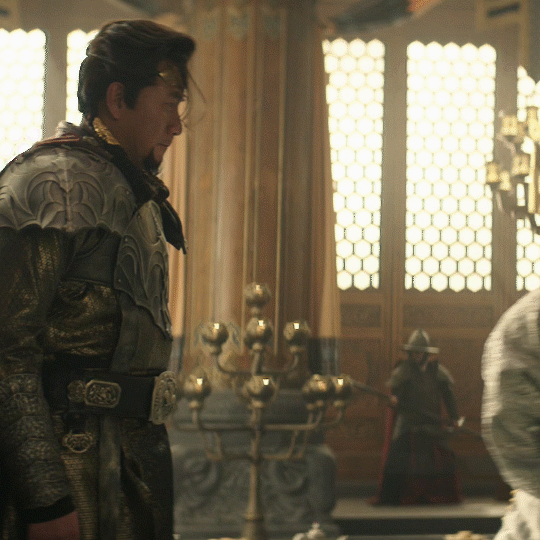電影的高潮,將軍在朝堂上當眾謀反,和皇帝對峙。