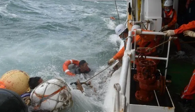 **受風浪影響,10月16日夜間,在距離長江口東北約120海里處,一艘漁船沉沒,13名船員失聯。**交通運輸部東海救助局第一時間派遣救助船趕赴事發海域搜救,17日一早,救助直升機加入搜救。17日7點40分,東海救助局救助直升機B-7356抵達現場,機組人員發現遇險漁船已經完全沉沒,並在附近海域發現有兩名船員漂浮在海上,機組人員將兩名落水船員位置告知正在附近搜救的“東海救101”輪。收到指令後,“東海救101”輪立即全速靠近遇險船員,經過緊張作業,救助人員將2名落水船員救起。目前仍有11名船員失聯,搜救還在緊張進行中。