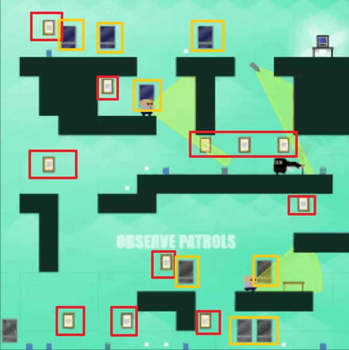 每個關卡中,除了有監控,還有來回巡視的安保,一旦被他們視線掃到,我們就要重來。