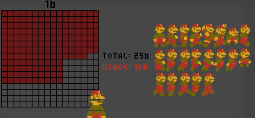 和上面講到 13kb 遊戲素材重複利用一樣,馬里奧也是有一套素材包。