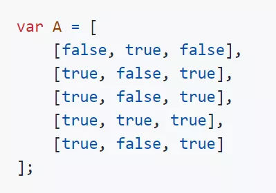 那麼要把這個對象塗成一個字母 A,我們可以按照下面的方式填入 true 和 false。