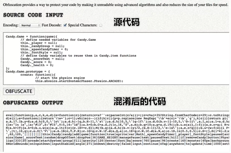 在編程中有一類工具叫混淆器,它在保證不破壞原功能的前提上,把源代碼混淆成讓人難以理解的格式,來保護源代碼。