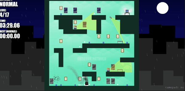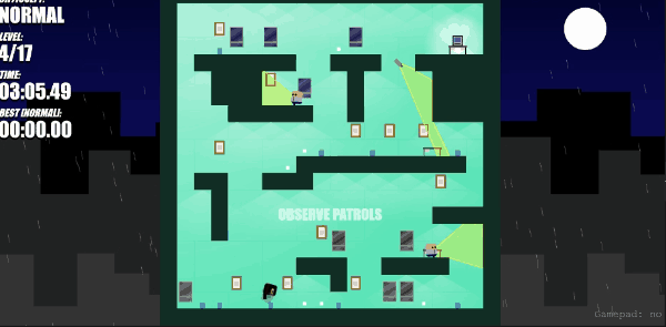 遊戲裏我們扮演一個忍者,需要從起點出發,通過跳躍、爬牆等方式來到電腦旁偷到資料。