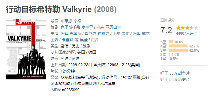 今兒,軍武菌向大家推薦的就是根據希特勒一生中遭遇的最後一場刺殺——瓦爾基里行動真實歷史事件改編的電影《行動目標希特勒》。