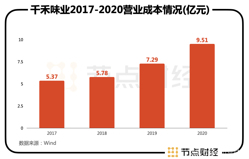 千禾上半年營業成本5.12億元,較2020年同期的4.02億元增加1.1億元,同比增幅27.39%。公司表示,主要系原材料價格上漲及本期執行新收入準則,將與合同履約直接相關的運雜費、包裝費用計入營業成本進行核算。