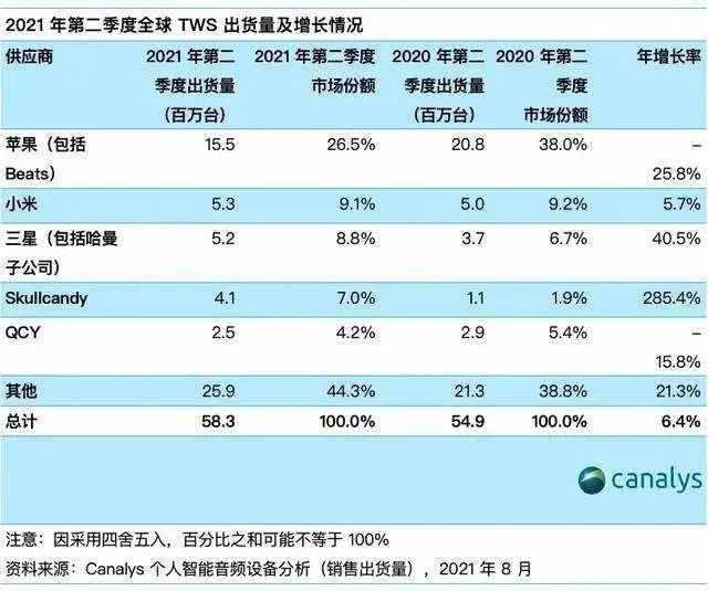 Canalys2021年二季度TWS市場報告