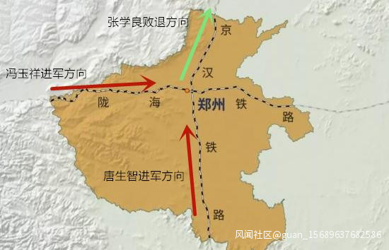 張學良本來打算死守鄭州,見馮玉祥從西邊殺來後,失去了死守的信心,率軍撤往黃河以北。