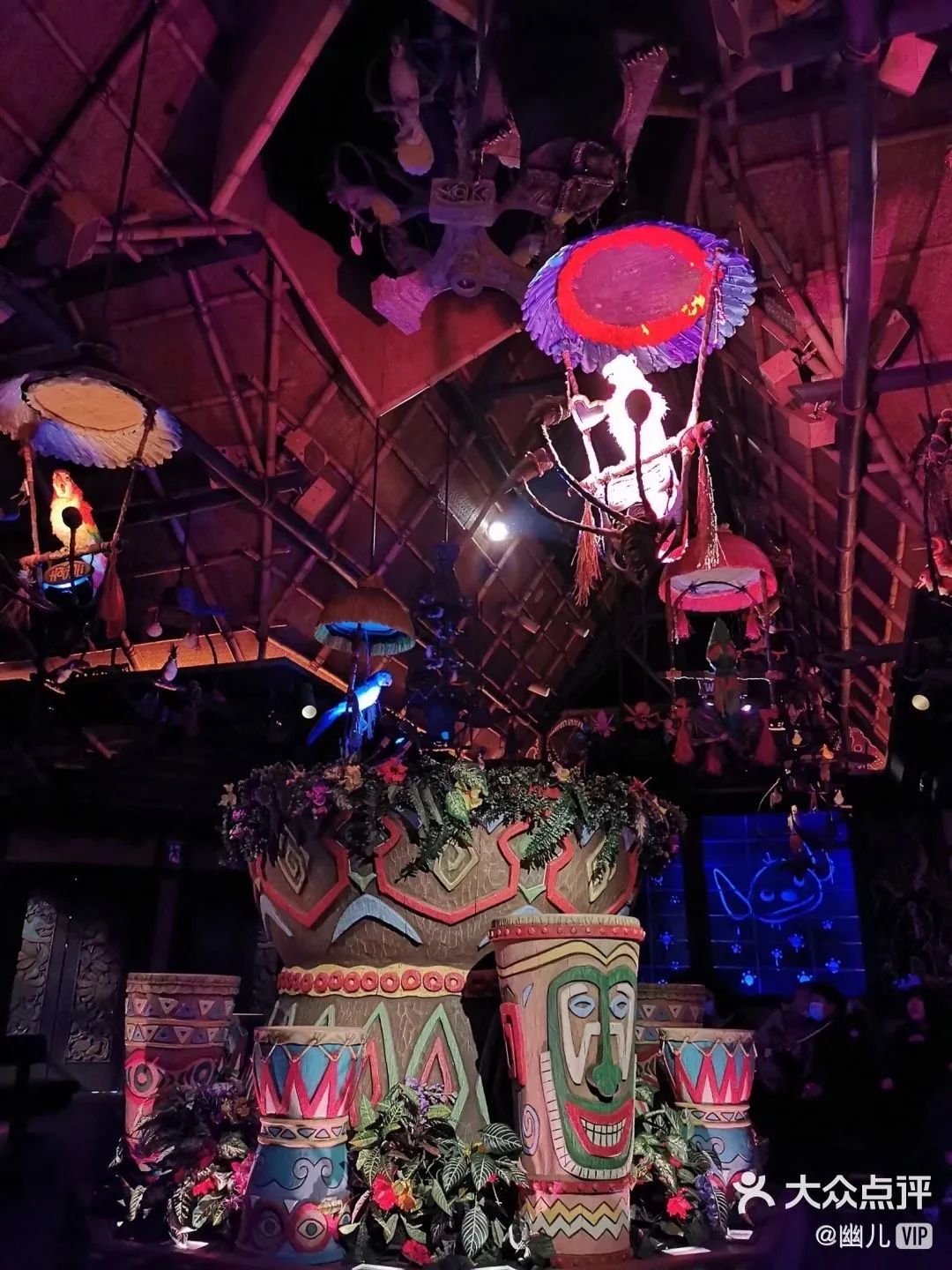 日本迪士尼也搞了一個名為提基神殿的劇場(Enchanted Tiki Room),舞台下作為支柱用的提基神像、茂密的熱帶植物裝飾以及原始的木雕和麻繩飾物都是TIKI的顯著特徵。