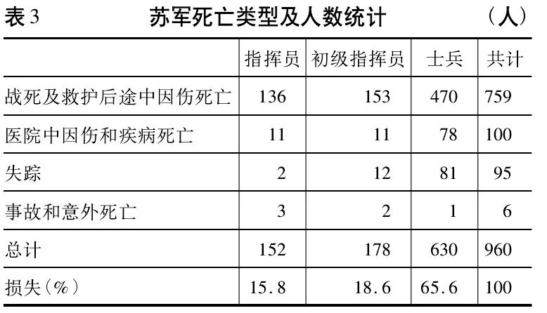 另外,也有俄文資料表明,蘇軍共有960人陣亡,這組數字也相當可信,筆者認為可能是統計者將不同性質的人員損失都計入了陣亡序列裏。