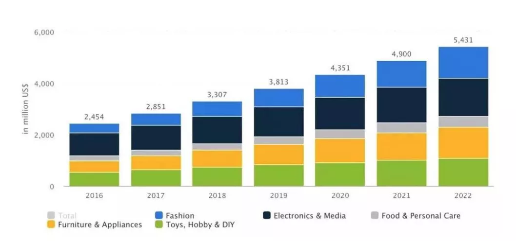 根據國際研究機構Statista數據顯示,2017年,南非跨境電商進口銷售額約為8.9億美元,比2016年增長30.9%。預計到2022年,南非市場電商交易量將達到54.31億美元,電商用户滲透率將達到64.1%。