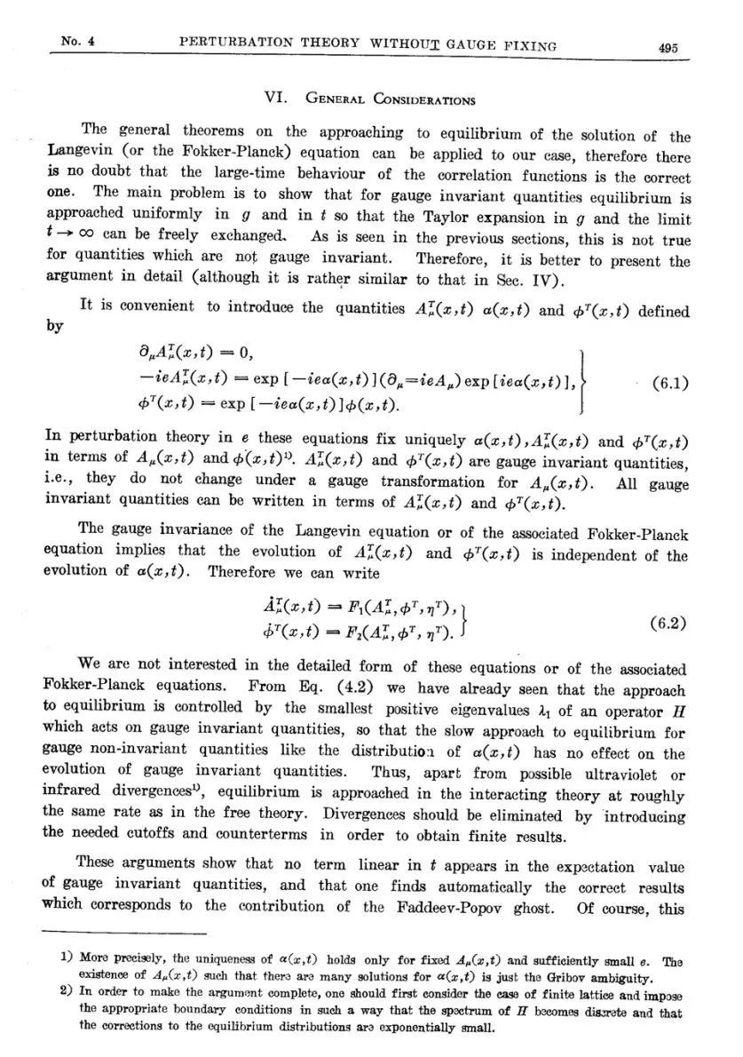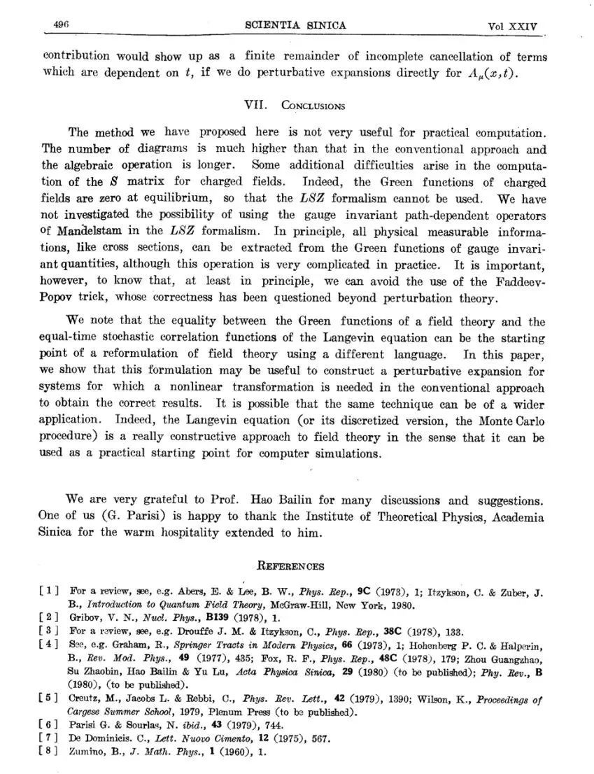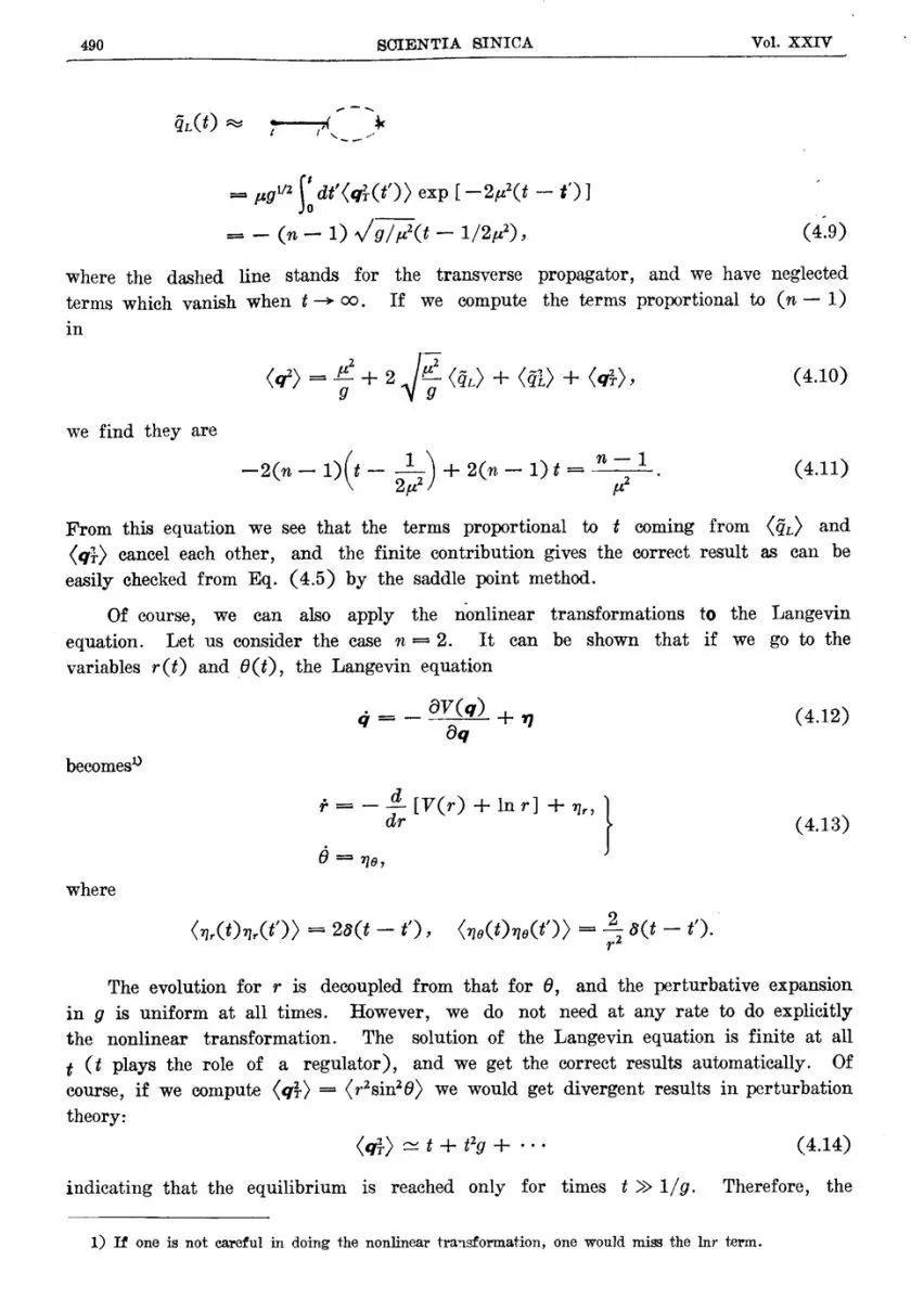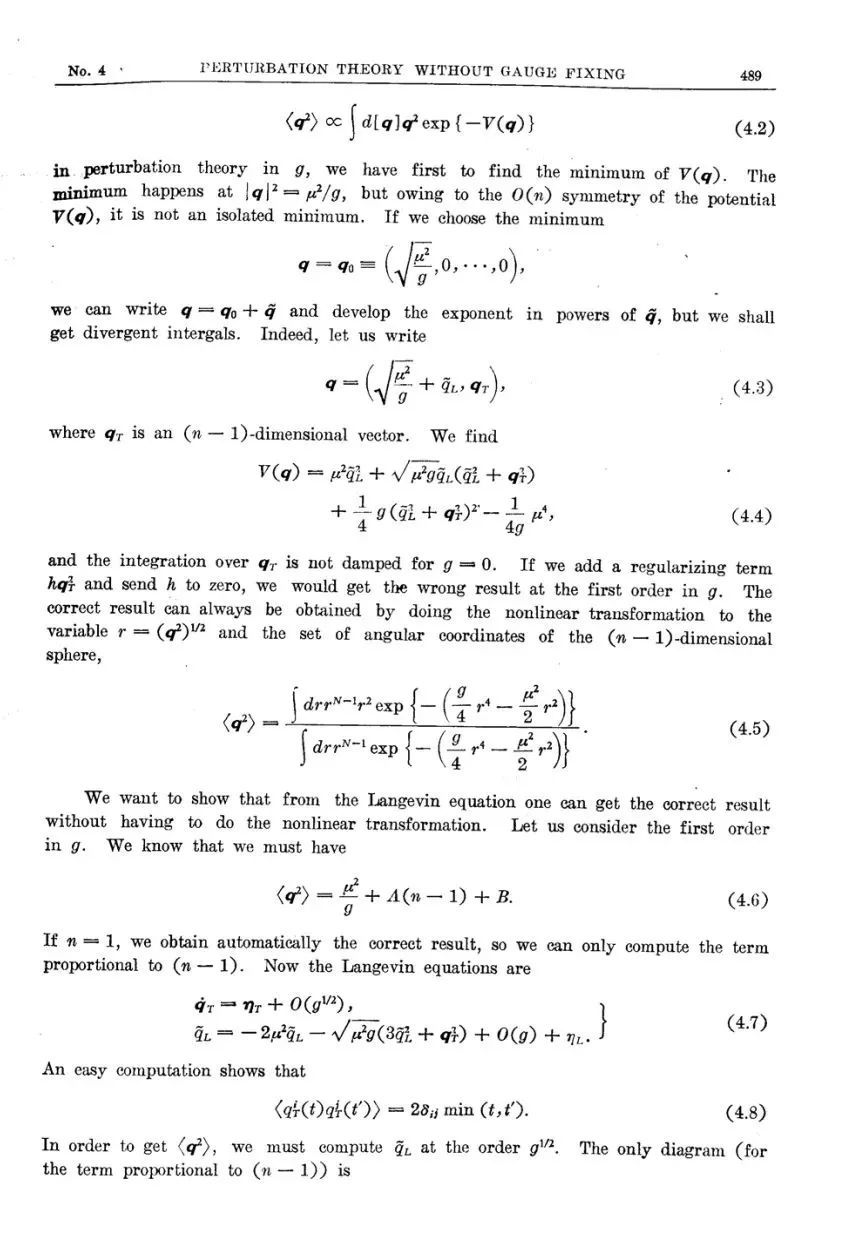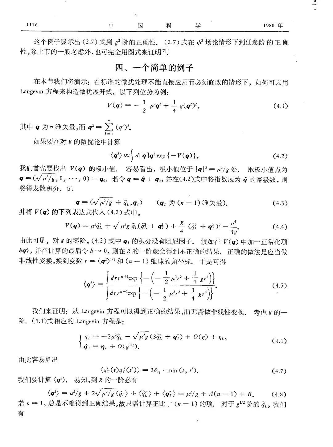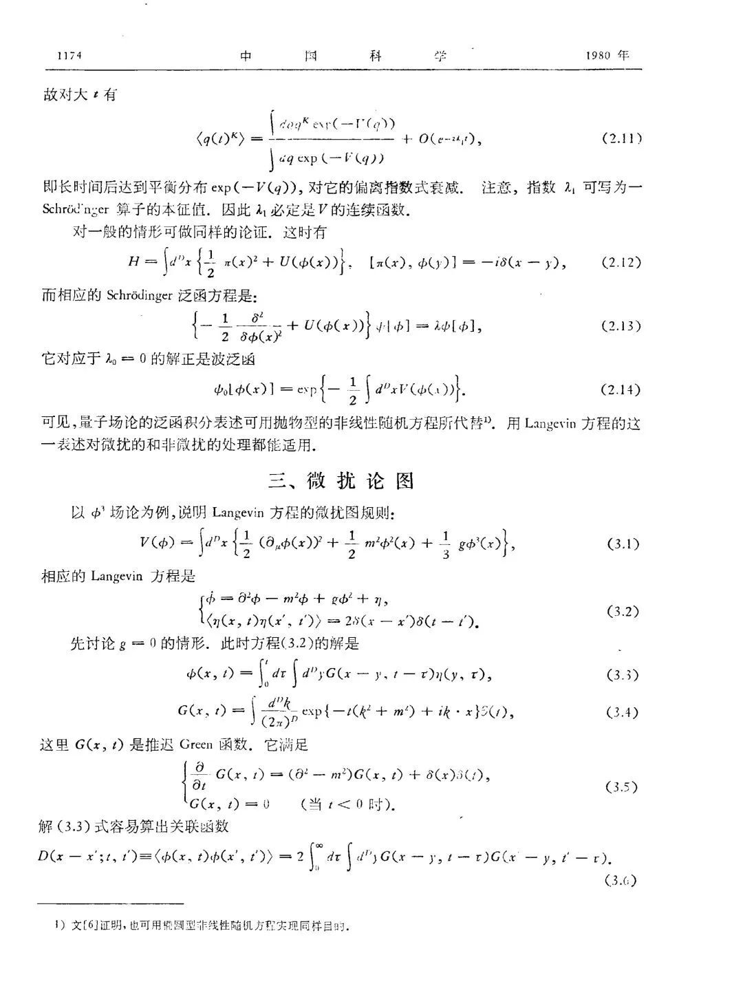 這篇論文的主要內容是從隨機過程的朗之萬方程出發,建立量子場論的微擾論展開。該方法可以應用於規範場理論,其獨特的優點是無需事先固定規範就能做量子場論的微擾論展開,正確計算規範不變的物理量。文章論及歐氏空間中量子場(特別是量子規範場)系統的漲落驅動其向平衡態的演化。而後者延拓到閔氏時空就得到物理的量子場系統的最低能量的基態。因為量子場論描述基礎理論中最為基本的系統,既可用以描寫基本粒子物理微觀現象,亦可描述凝聚態物質的宏觀量子效應,如量子拓撲物態等。所以本文出現後,引起了國際(特別是歐洲)粒子理論學界的重大反響。
