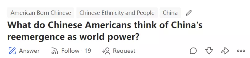 在外網,關於華裔美國人與中國關係的討論有很多,其中就有一個話題:華裔美國人如何看待中國重新崛起為世界強國?