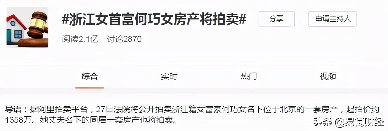 又一個女首富栽了,2套房子被拍賣,300億身家恐清零_風聞
