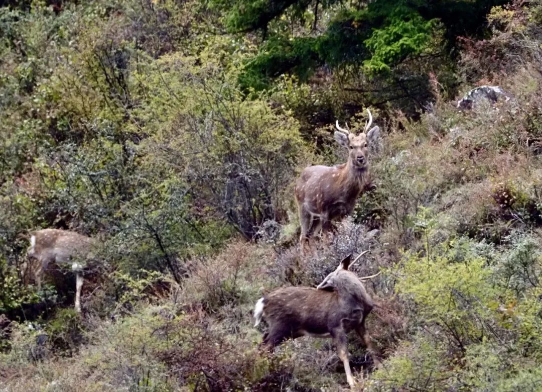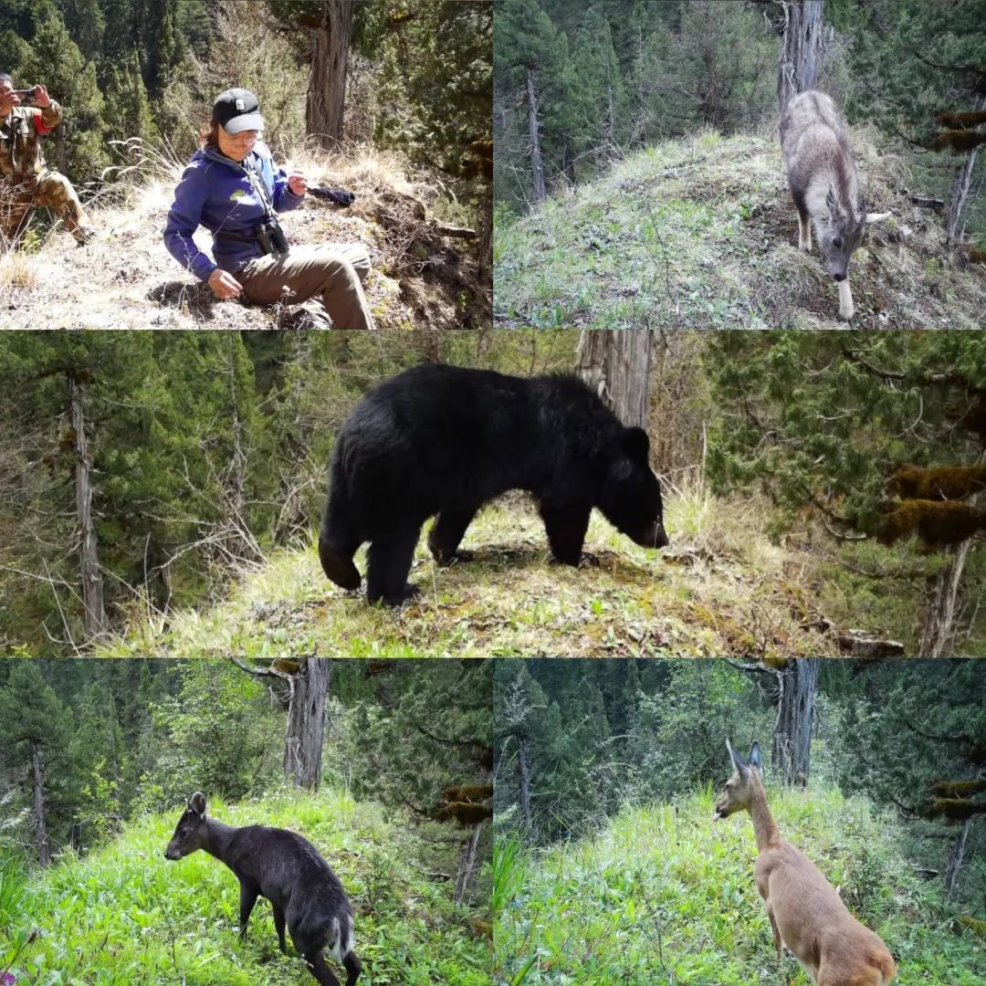 在一年的野外調查中,有蹄類記錄如下:四川羚牛、中華斑羚、中華鬣羚、梅花鹿、狍、毛冠鹿、林麝、馬麝、野豬、岩羊,一共10種!