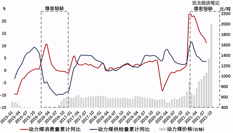2、**煤炭供給對於電力穩定依然關鍵。**隨着內蒙等產能釋放,加之經濟動能趨弱,煤炭缺口有望收窄。近期電價逐步放開的改革有利於緩解長期以來“市場煤,計劃電”引致的深刻扭曲。但與今年煤價的驚人漲幅相比,電價的調節作用依然温和且邊際。